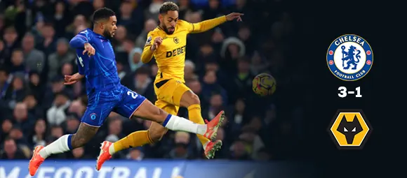 حقق تشيلسي فوزًا بنتيجة 3-1 على ولفرهامبتون، ليضع حدًا لخمس مباريات متتالية بدون فوز، ويضمن استمراره في المناف
