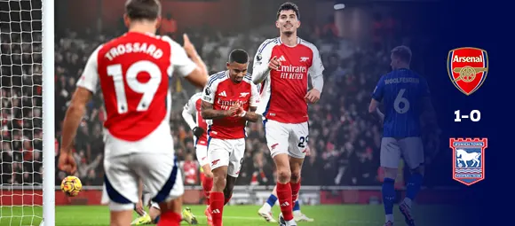 حقق أرسنال فوزا 1-0 على إيبسويتش تاون، ليوسع سلسلة مبارياته بلا هزيمة إلى 11 مباراة ويضع الضغط على ليفربول.