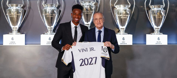 يؤمن ريال مدريد مستقبل النجم الصاعد فينيسيوس جونيور بعقد جديد طويل الأمد سيبقي النجم البرازيلي في النادي حتى عام 2027. كما يتضمن تمديد العقد شرطًا جزائيًا مذهلاً بقيمة مليار يورو، مما يؤكد التزام ريال مدريد بالحفاظ على فريقه الواعد. المواهب. إن حضور فينيسيوس جونيور المذهل على أرض الملعب جعله لاعبًا رئيسيًا في النادي، ويشير تمديد العقد هذا إلى مستقبل مشرق في سانتياغو برنابيو.