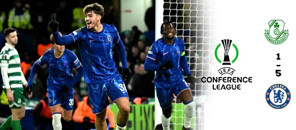 قادت ثلاثية مارك جويو تشيلسي إلى فوز 5-1 على شامروك روفرز في مرحلة خروج المغلوب من دوري المؤتمرات. اشترِ تذاكر ت
