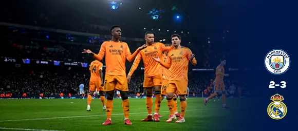 Real Madrid won 3-1 against Manchester City in the Champions League round of 32 tie, qualifying for the next round with a 6-3 aggregate score. Mbappe scored a hattrick, while Nico Gonzalez scored a co