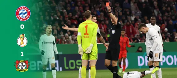 Manuel Neuer received his first red card in his career, as Bayern Munich lost to Bayer Leverkusen in the DFB Pokal last 16, securing their quarter-final progression