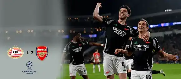 PSV 1-7 Arsenal: Arsenal Record Biggest Ever Away Win at UCL Knockout Rounds