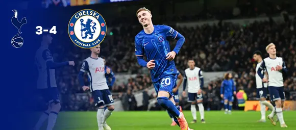 Chelsea F.C. came from two goals down to defeat Tottenham Hotspur 4-3 in a pulsating Premier League clash at the Tottenham Hotspur Stadium. The victory, spearheaded by a brace from Cole Palmer and crucial goals from Jadon Sancho and Enzo Fernandez, propelled CFC to second place in the Premier League table while increasing the pressure on Spurs' manager, Ange Postecoglou.